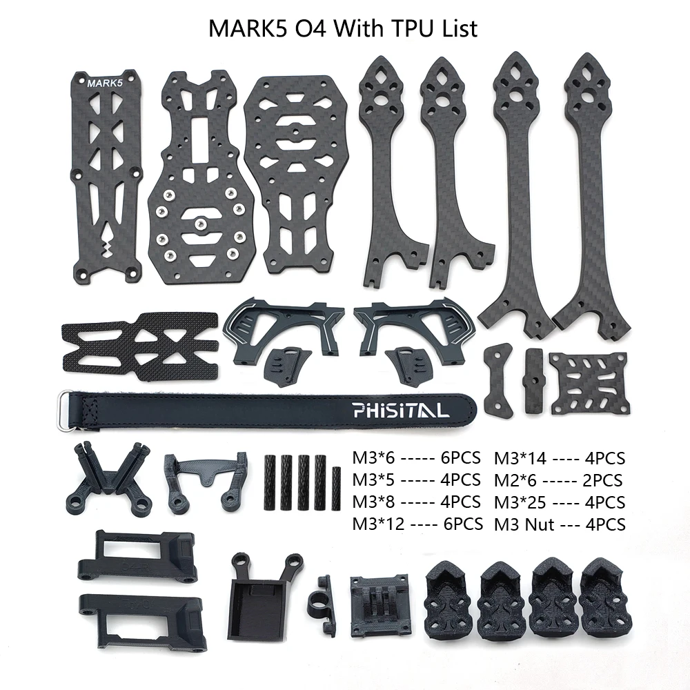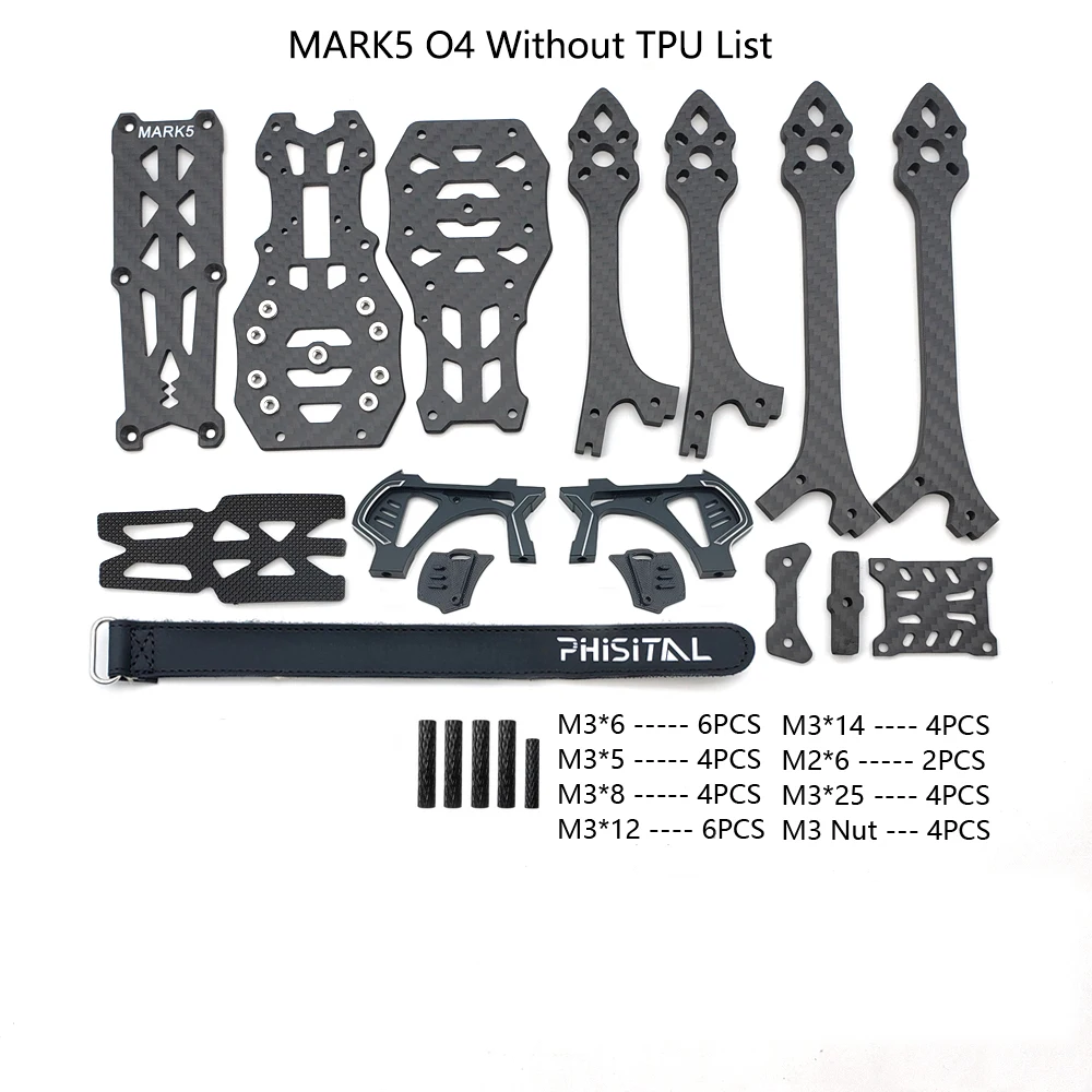 PhiSital Mark5 O4 Pro FPV Kit de cadre X/DC Vesion 5 pouces en Fiber de carbone quadrirotor Drone de course pour RC freestyle pièces de bricolage